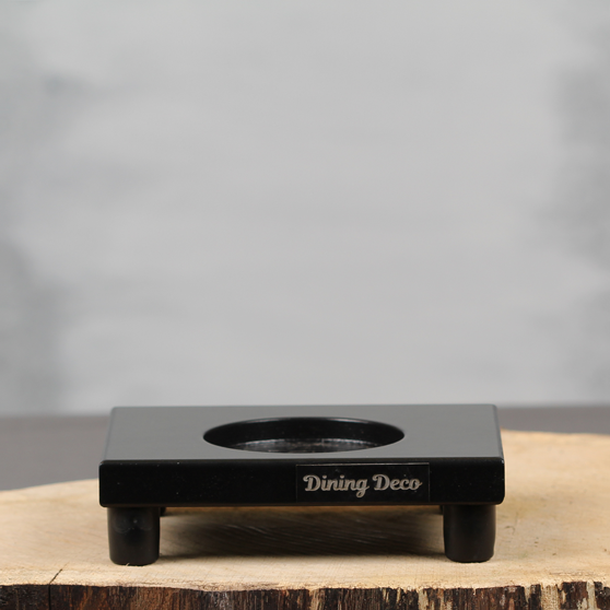 Onze kleine zwarte tafelplank van 15x12cm is een van onze stijlvolle tafelplanken voor smaakvolle restaurants. Deze kleine tafelplank is compact en eventueel sfeervol in te richten met accessoires uit onze collectie accessoires of wellicht past ook je eigen theelichthouder of vaasje in de daarvoor bestemde uitsparing. Onze losse items kun je vinden in onze collectie Dining Deco Accessoires.