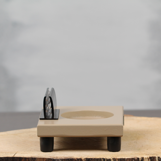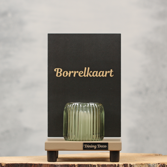 Onze compacte en sfeervolle tafelplank "Fendi" wordt geleverd inclusief kaartklem en theelichthouder Ribble Green zoals je deze ziet op de foto. Deze compacte zandkleurige tafelplank met kaartklem past op iedere horeca tafel en laat zich makkelijk optillen. Door de uitsparing in deze compacte tafelplank blijft je theelichthouder altijd op dezelfde plek staan.