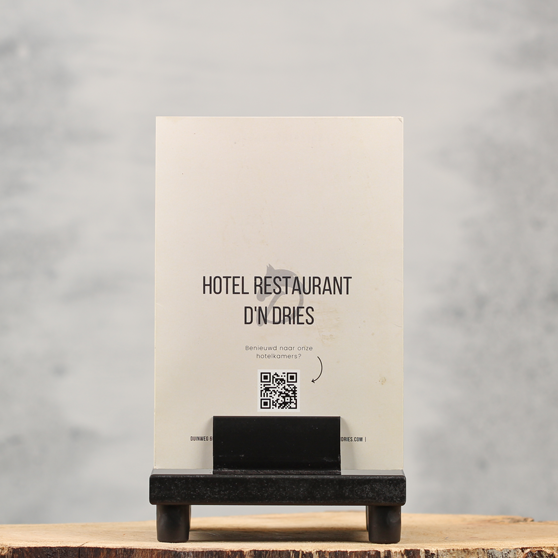 Onder onze tafeldecoratie planken hebben we gekozen voor hoge kwaliteit rubber doppen zodat de tafelplank stevig en krasvrij op elke horeca tafel kan staan.