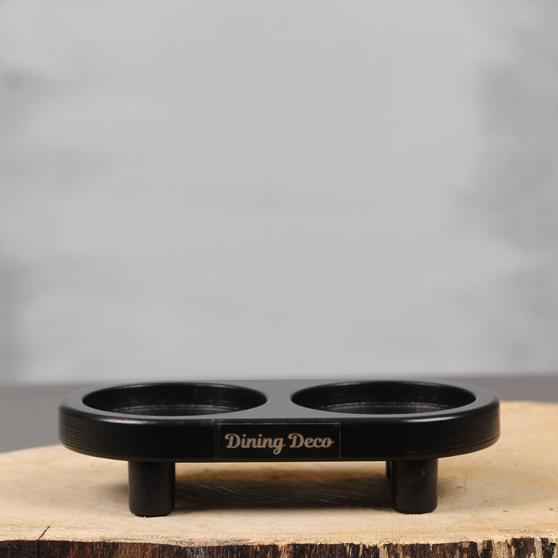 Dit super compacte zwarte tafelplankje past op iedere horeca tafel en laat zich makkelijk optillen. Door de uitsparingen in deze mini tafelplank blijven bloemenvaasje en theelichthouder altijd op dezelfde plek staan. Ook erg leuk om cadeau te geven!